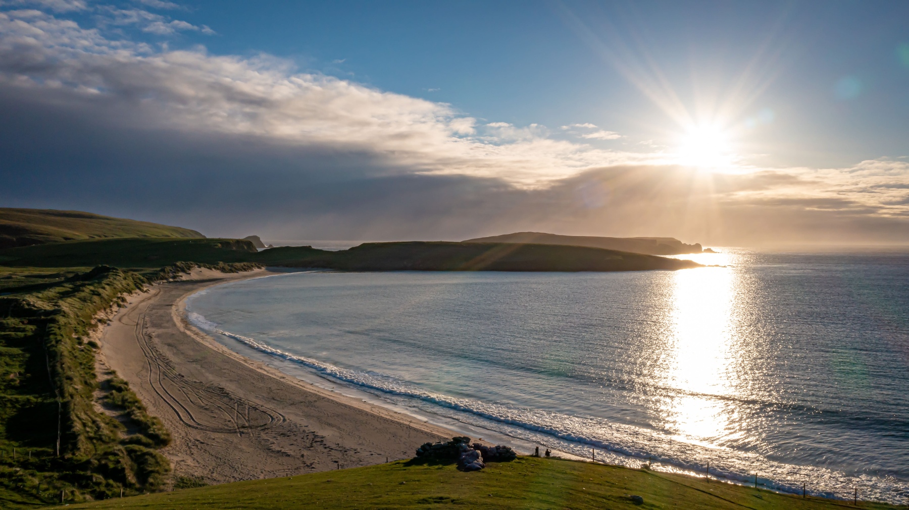 The south mainland is blessed with many other high quality beaches including Maywick Beach, Quendale Beach, West Voe Beach, Grutness Beach and Levenwick Beach, all of which are within easy driving of Shetland Glamping.